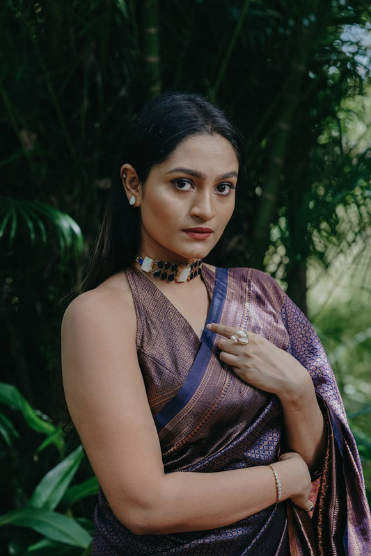 BLACK Banarasi copper zari woven SOFT LICHI SILK SAREE