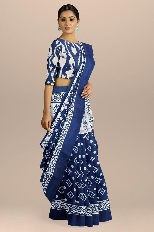 Handicraft Ladies Batik Pure soft Cotton Batik Sari With Blouse Piece Ragini Blue
