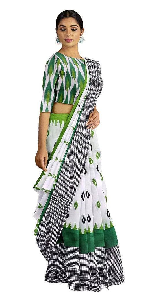 Handicraft Ladies Ikat Pure soft Cotton Sari With Blouse Piece Sathiya