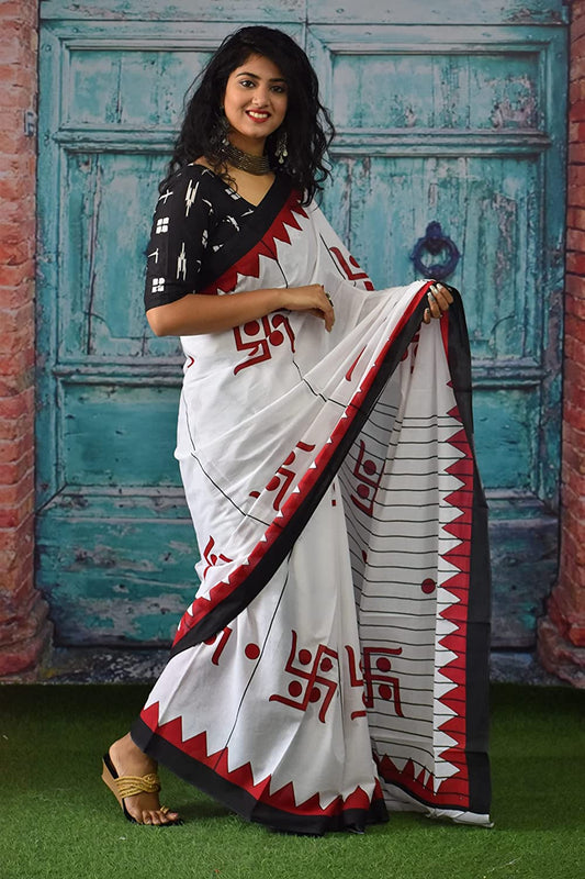 Handicraft Ladies Block Print Pure soft Cotton Sari With Blouse Piece