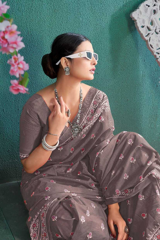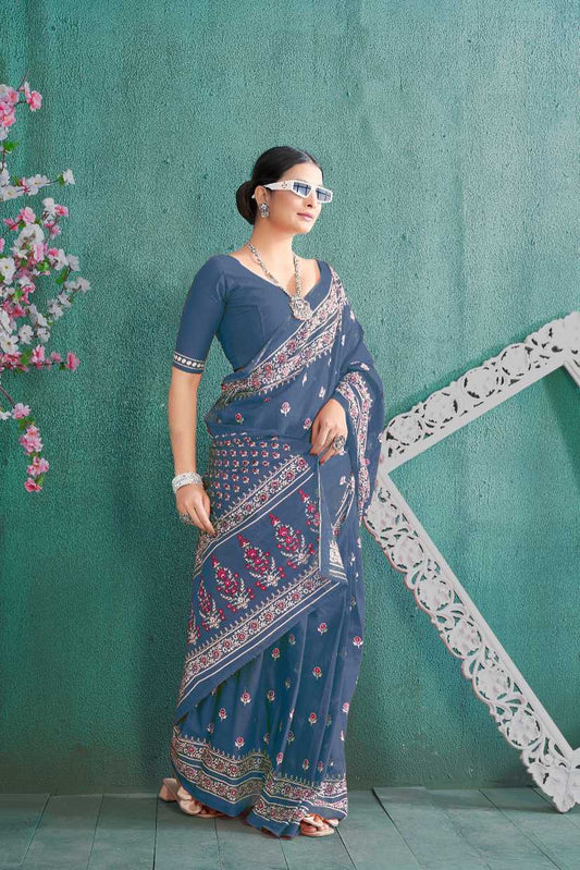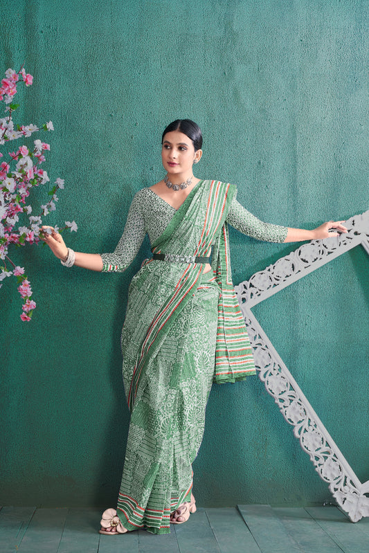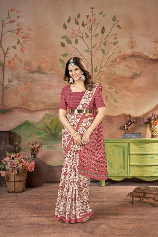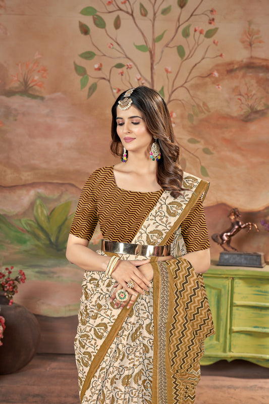 Handicraft Ladies Block Print Pure soft Cotton Sari With Blouse Piece Aliya