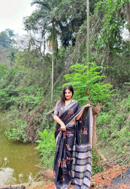 Handicraft Women's Ikat Pure soft Cotton Saree With Blouse Piece