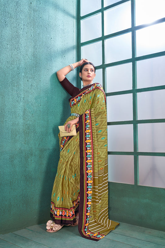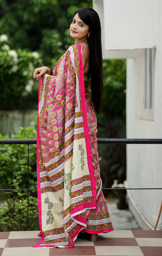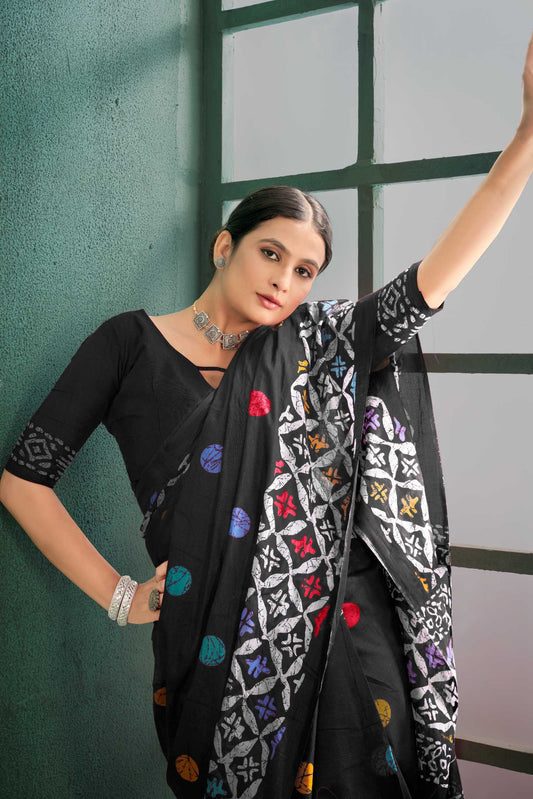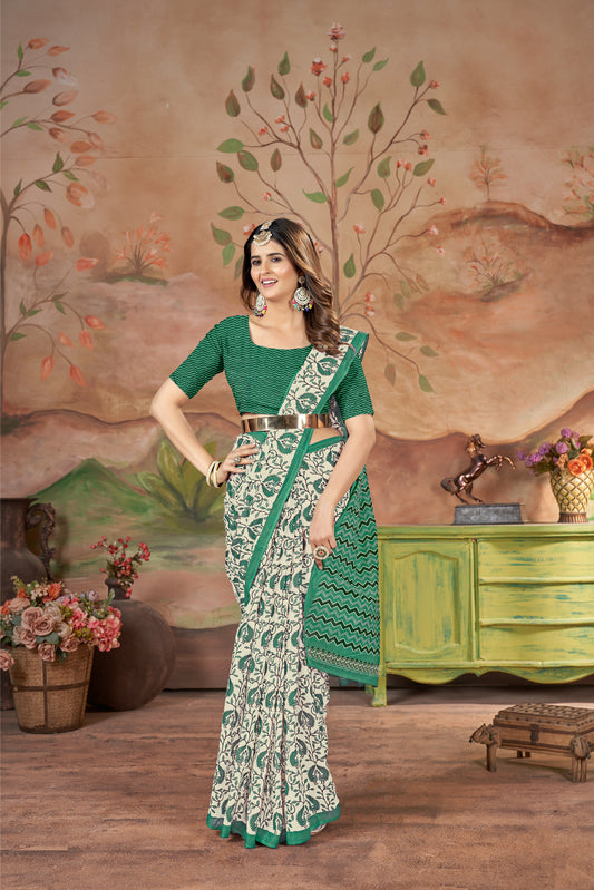 Handicraft Ladies Ikat Block Print Pure soft Cotton Sari With Blouse Piece MJ01