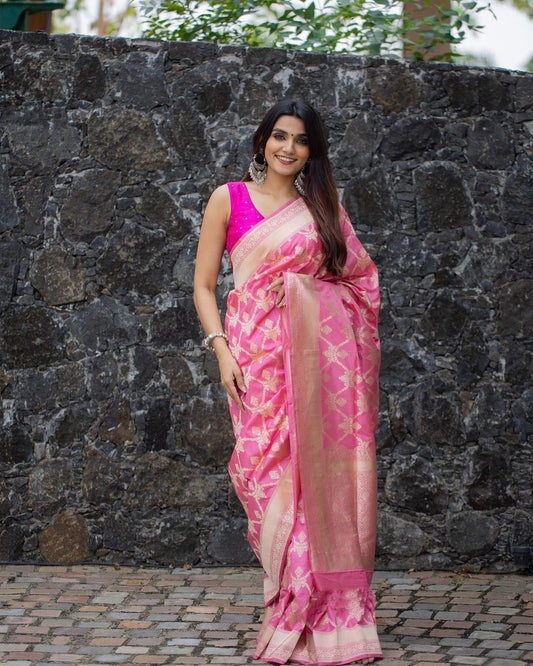 PINK Banarasi zari woven SOFT LICHI SILK SAREE