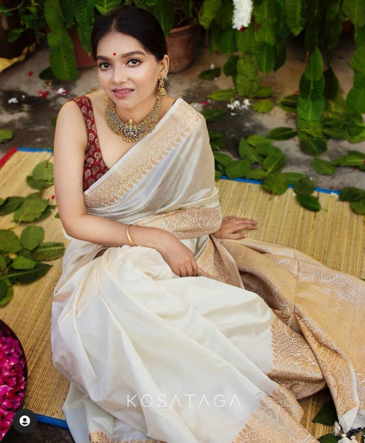 Beige With Silver & Gold Zari Kanjivaram TISSUE Saree KARSHINI