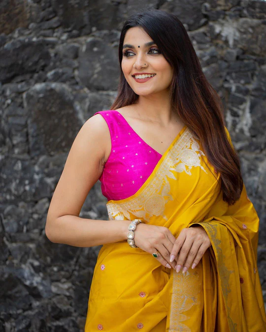 Women's kanjivaram Banarasi Soft Silk Pure Zari Woven Sari With Blouse piece